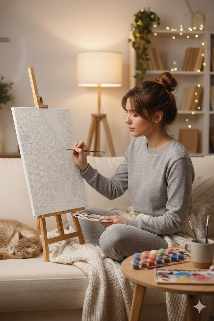 La peinture par numéros calme l’esprit et réduit le stress en quelques minutes. En suivant les couleurs, vous entrez dans une bulle apaisante comparable à une méditation douce. Le geste répétitif libère votre mental et offre un vrai moment de bien-être..
